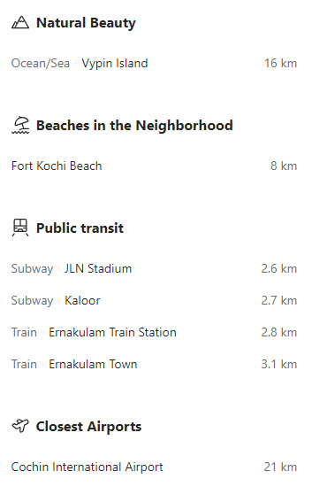 - The nearest Metro Station and Water Metro Station is Vyttila which is 2 km away from the property.